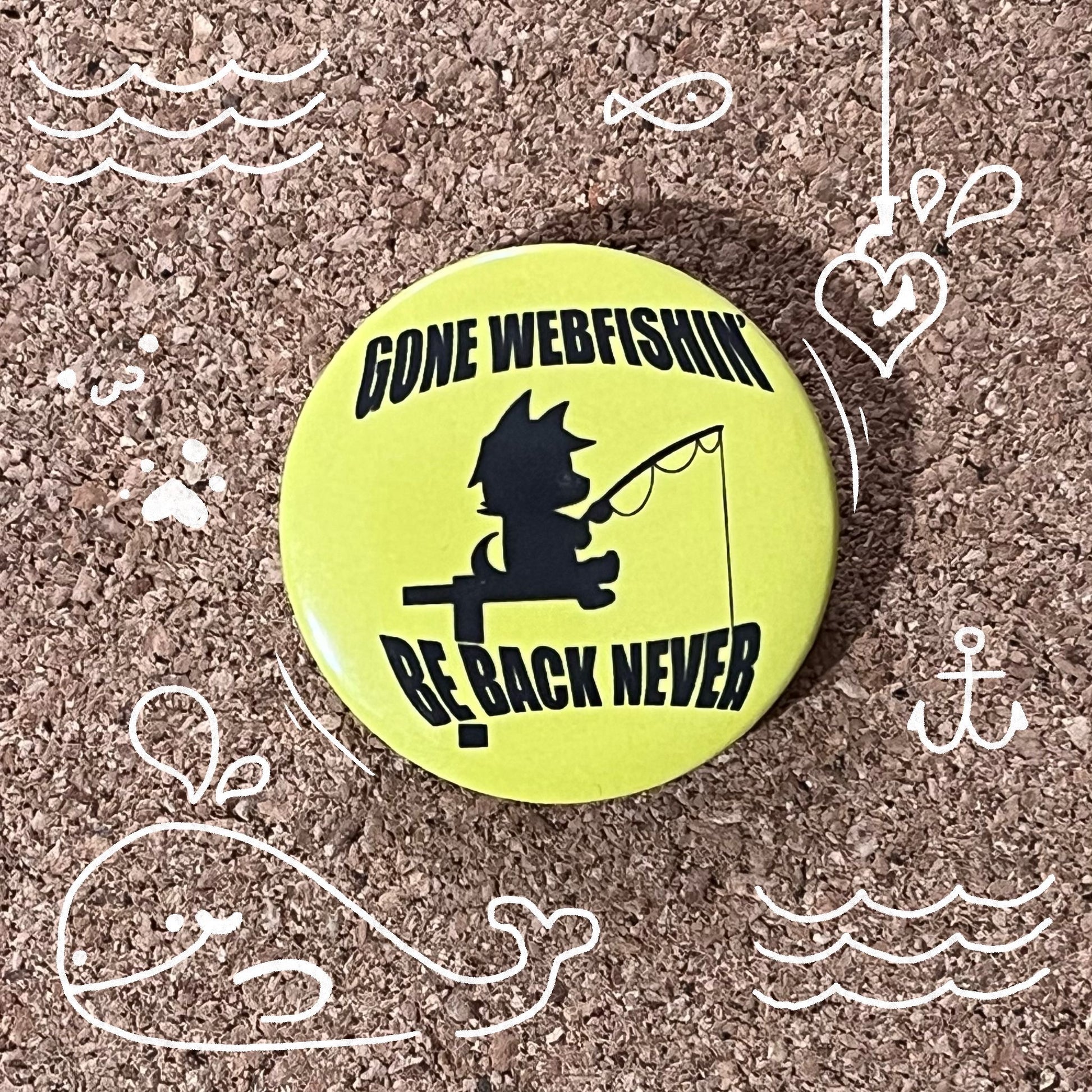 Gone Webfishin’, Be back never | Video Game | Button badge